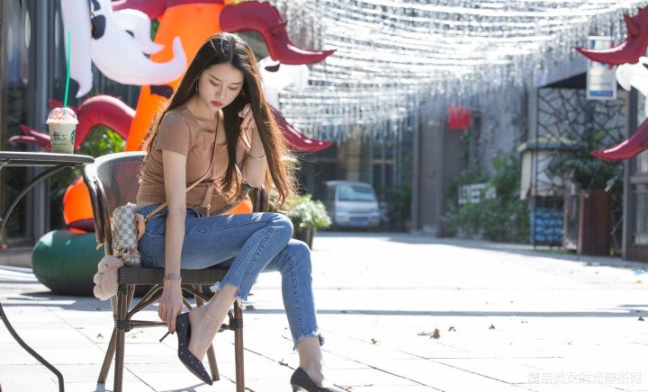 👖 牛仔裤,这个时尚界的常青树,总是能给我们带来无尽的惊喜。今天,就让我们一起来看看如何将牛仔裤穿出封神的效果! 👚上衣选择了一件修身的棕色短袖T恤,不仅显瘦还非常百搭。与浅蓝色牛仔裤的搭配,简直是天作之合,既日常又不失时尚感。 👠脚上的这双黑色细高跟鞋,简直是点睛之笔!它不仅拉长了腿部线条,还增添了一丝性感与优雅。无论是逛街还是约会,都能让你成为焦点。 👜搭配的格子链条包,小巧精致,为整体造型增添了一份时尚感。而包上的毛绒挂饰,更是增添了几分可爱与俏皮。 💇♀️长发披肩,自然垂落,与整体穿...